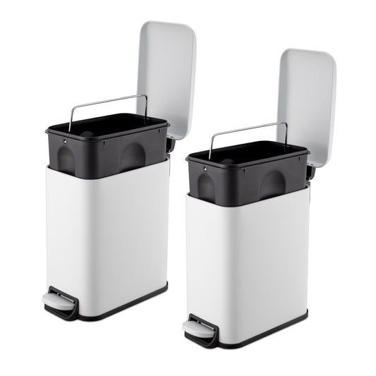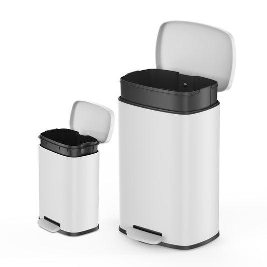 13.2 Gallon + 3.2 Gallon Rectangular Matte White Step Can Combo