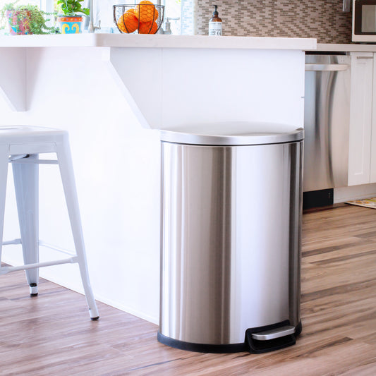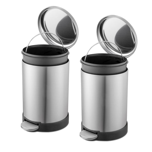 1.6 Gallon Stainless Steel Round Step Can - Pack of 2