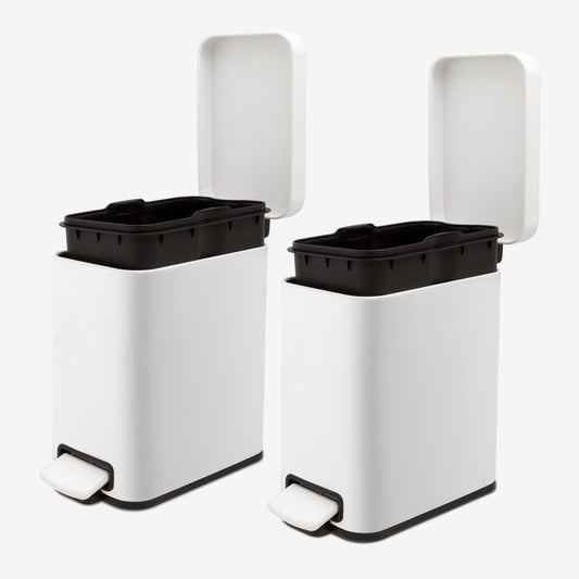 1.3 Gallon Matte White Slim Step Can - Pack of 2