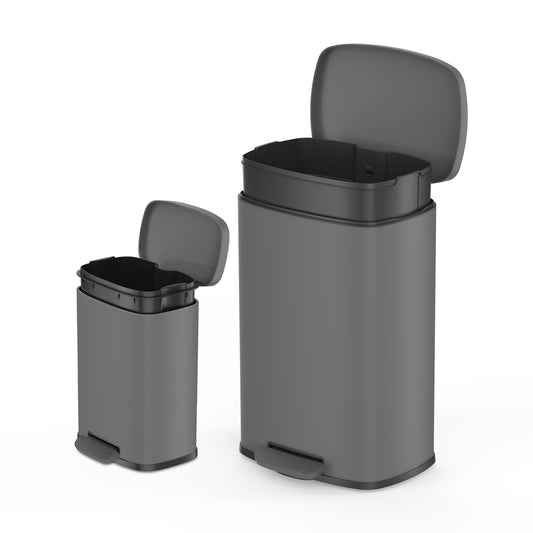 13.2 Gallon + 3.2 Gallon Rectangular Matte Gray Step Can Combo