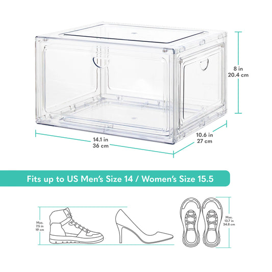 Clear Stackable Shoebox & Organizer with Double Magnetic Doors (Set of 2, 4, or 8)