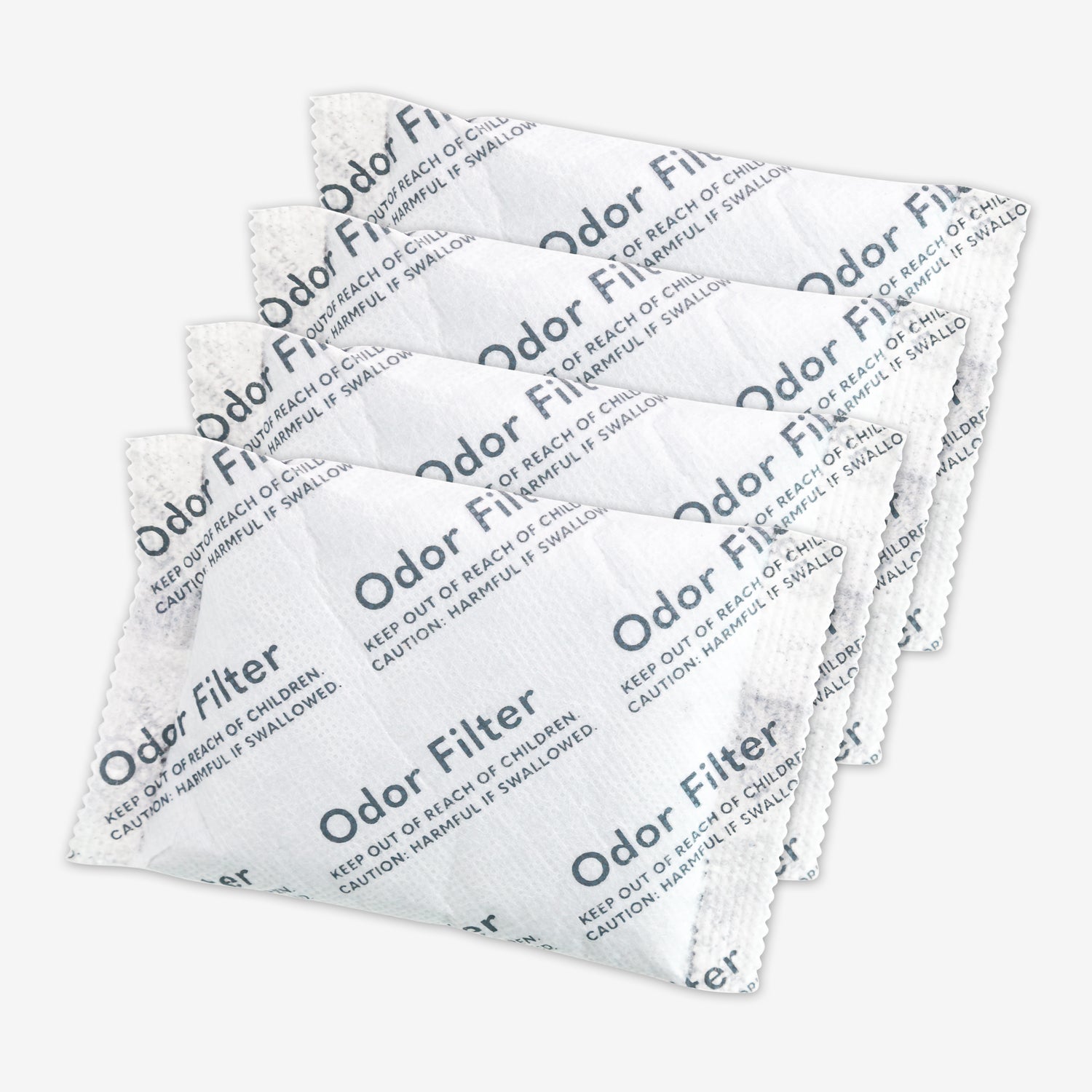 This little covered trash can is quiet and plastic! I like plastic because it doesn’t dent as my older metal ones did. Also, a finger hole in the inner bucket is very convenient for emptying. They small size is excellent to force emptying on a regular schedule.