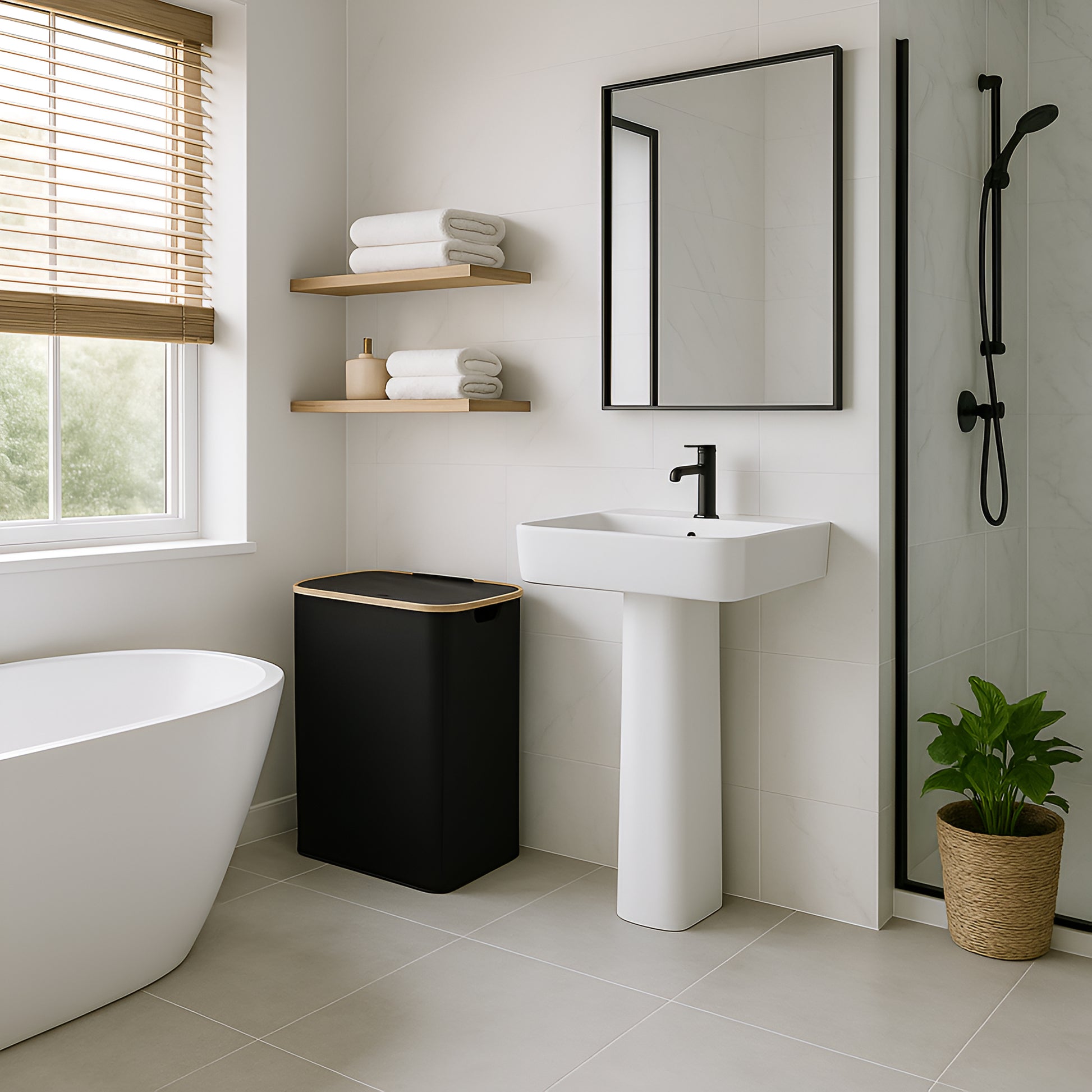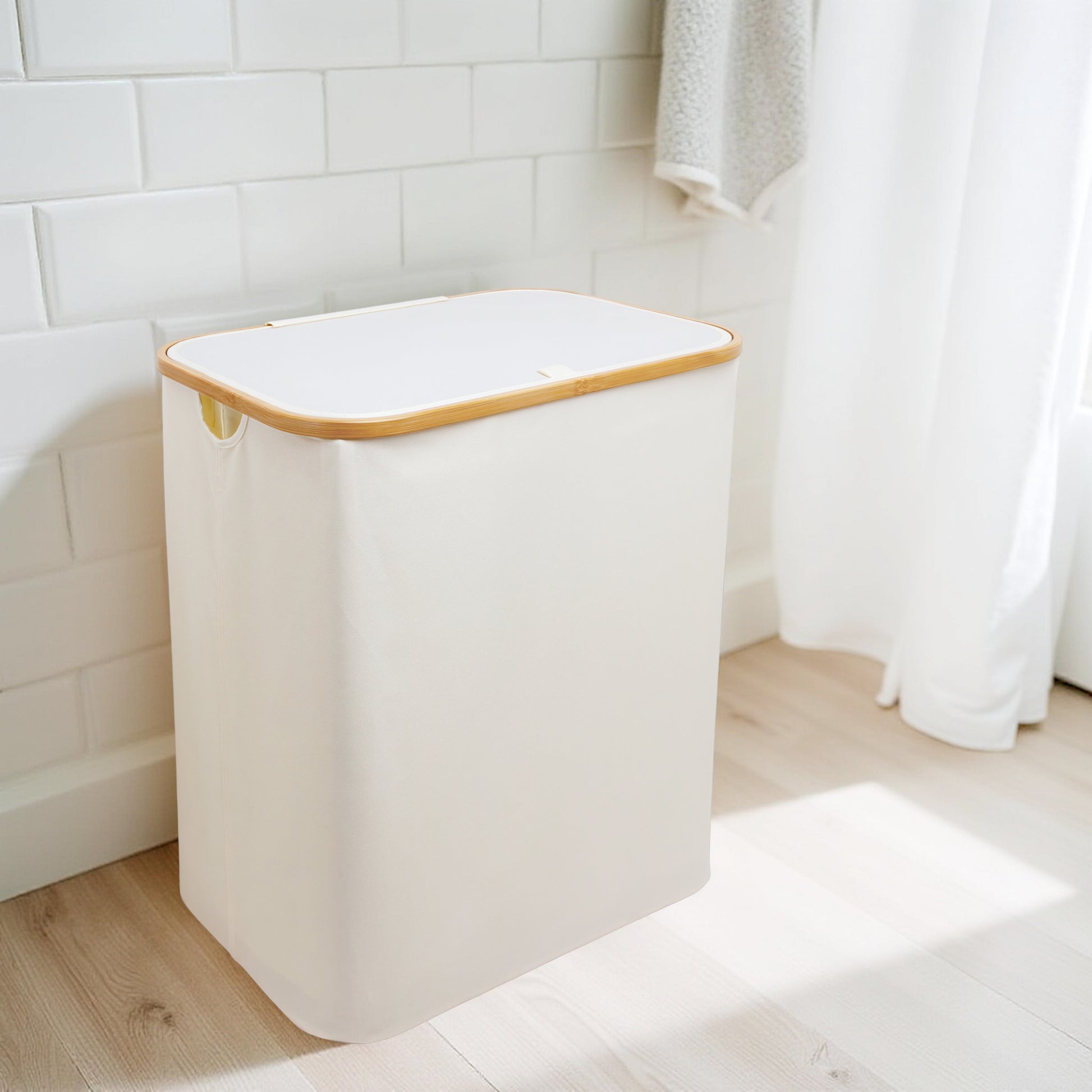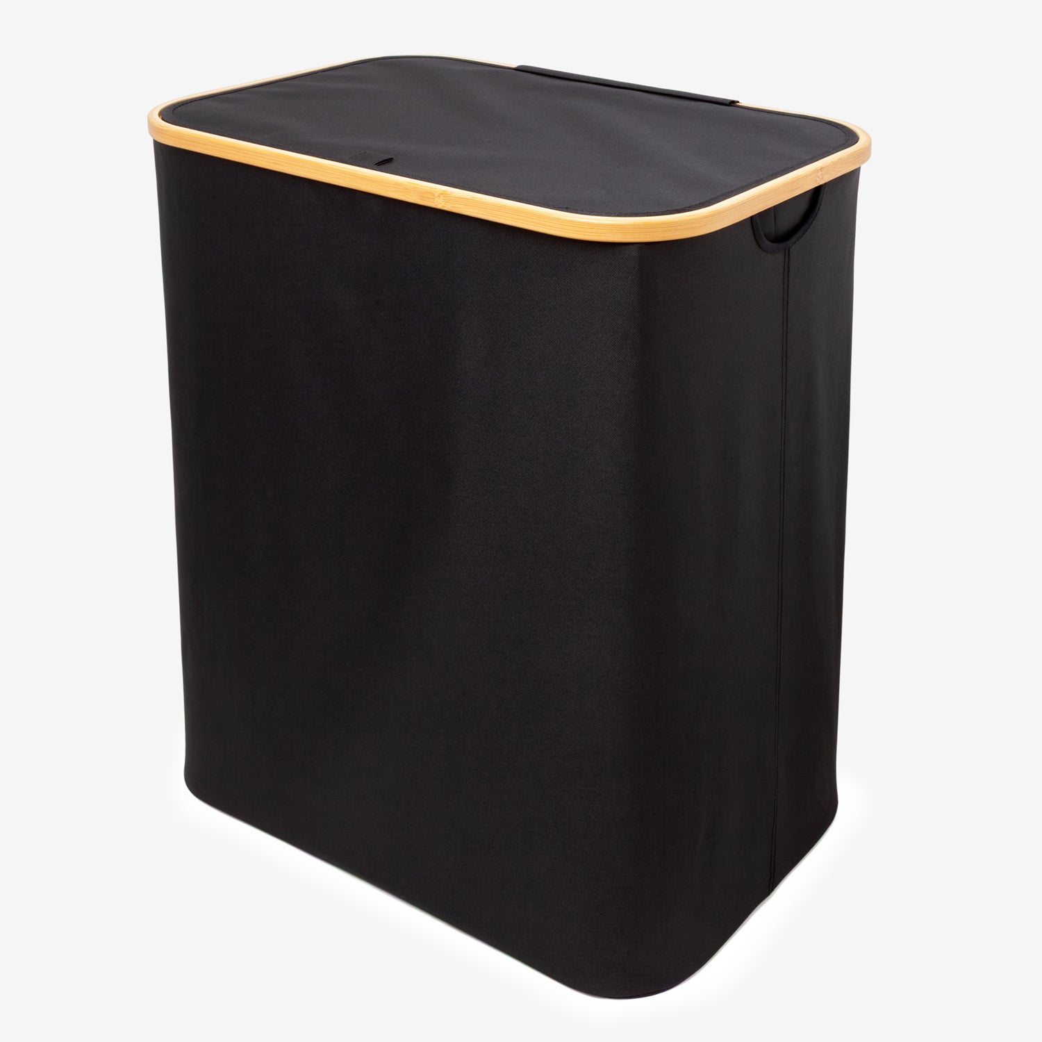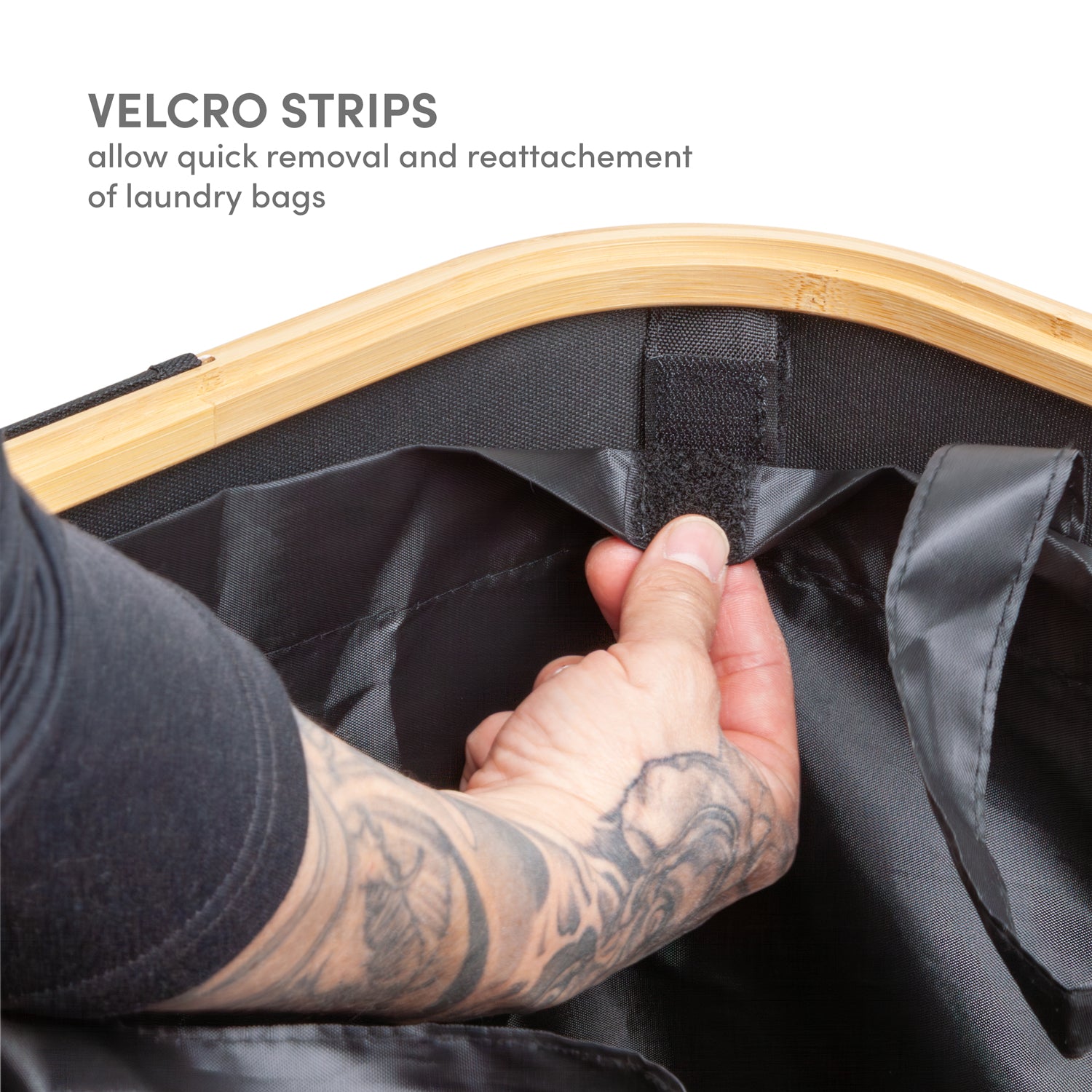 Dual Sections Bamboo Frame Hamper with Lid and Removable Bags