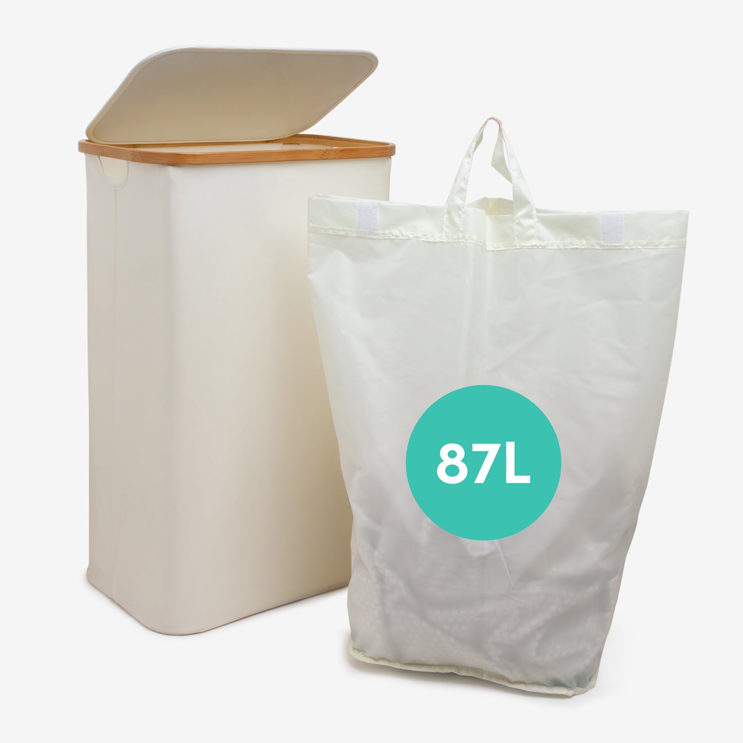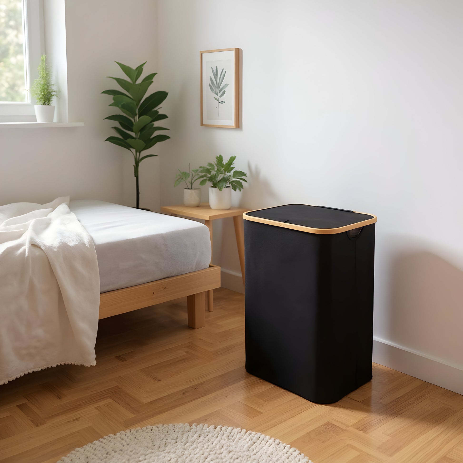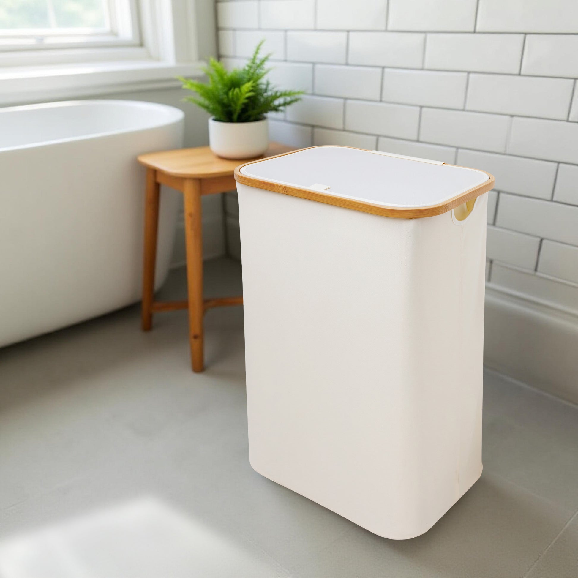 Single Section Bamboo Frame Hamper with Lid and Removable Bag