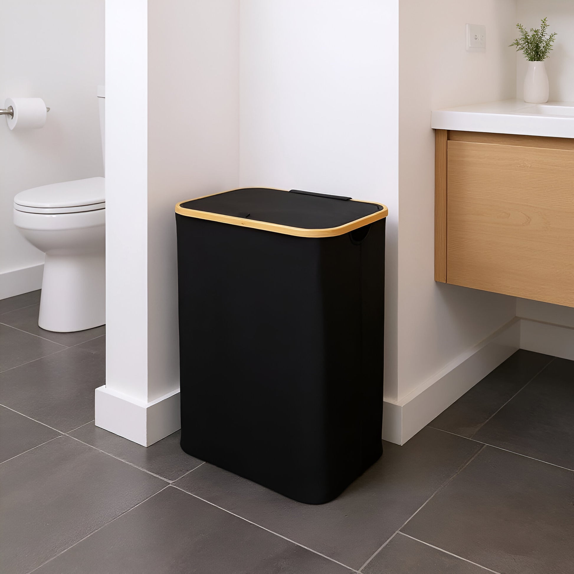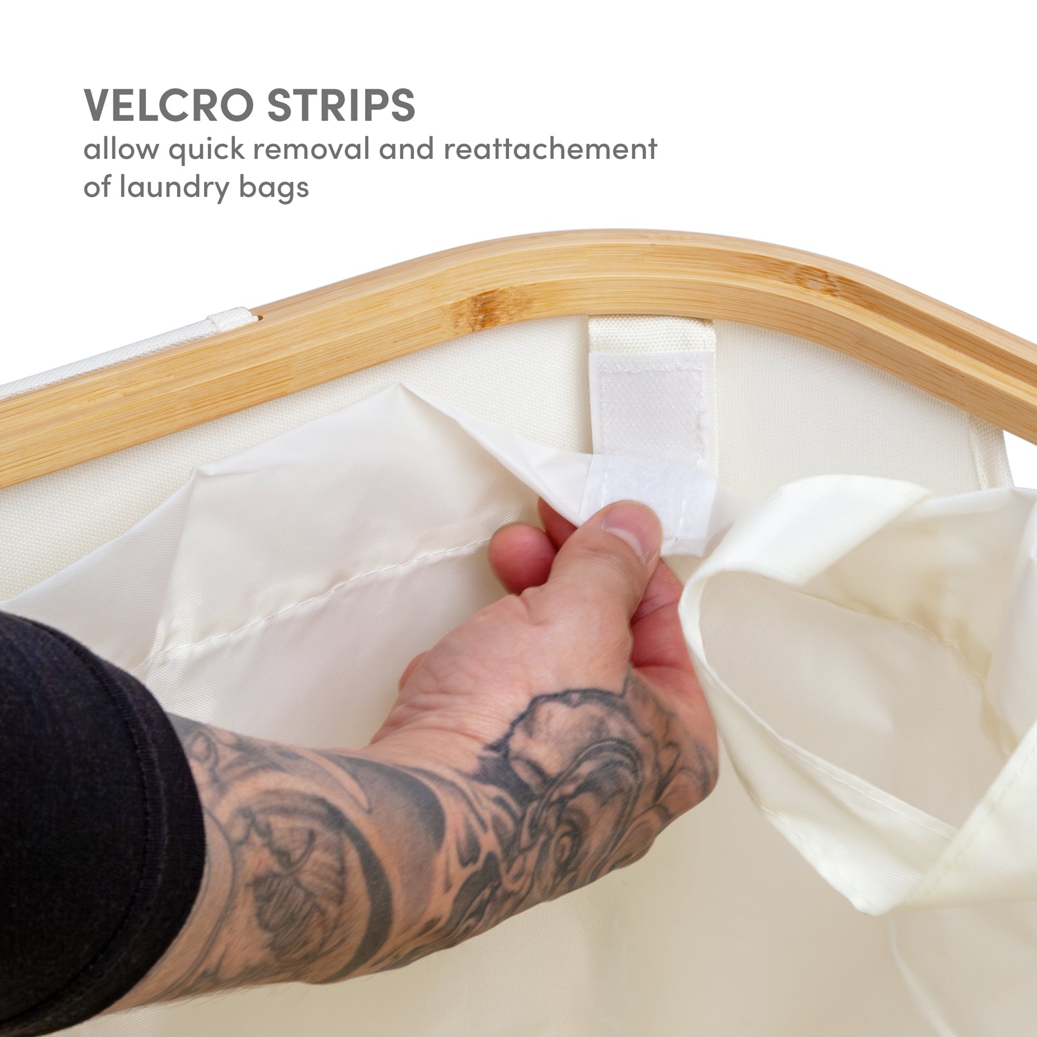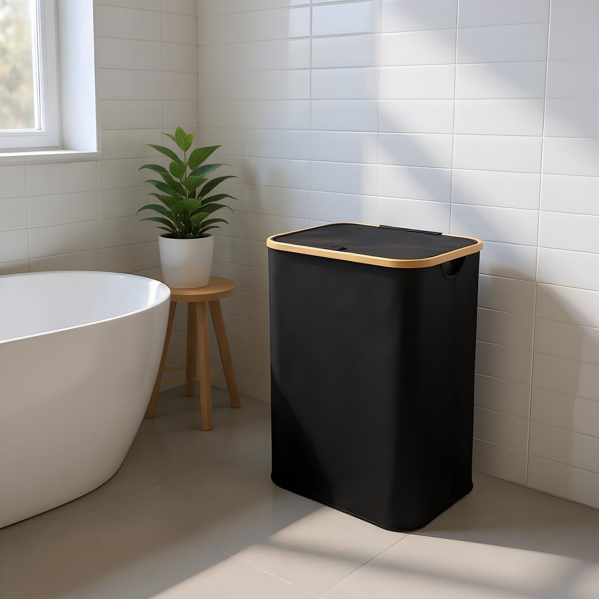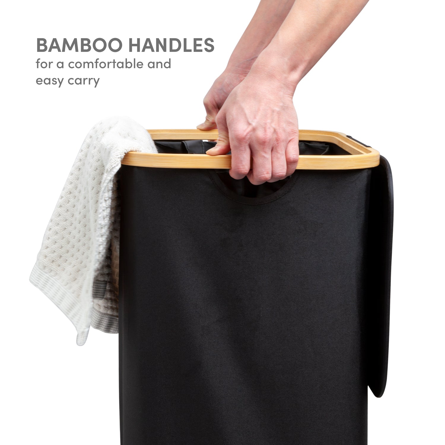 Single Section Bamboo Frame Hamper with Lid and Removable Bag